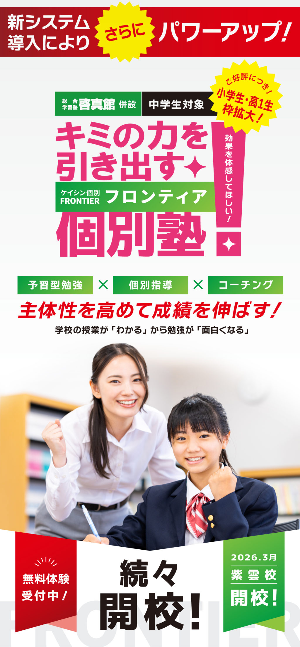 ケイシン個別 『FRONTIER〈フロンティア〉』続々開校!学校の授業が 「わかる」 から勉強が 「面白くなる」!