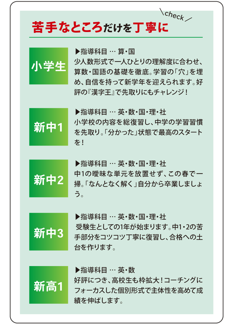定期テスト直前では徹底的に対策することができ、季節講習や中3後期では入試に向けた教材で公立高校受験を徹底サポート!
