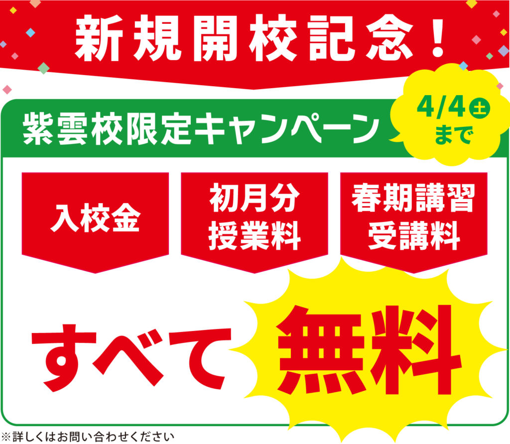 ご好評につき、小学生・高1生も枠拡大!3月紫雲校開校も決定しました!
