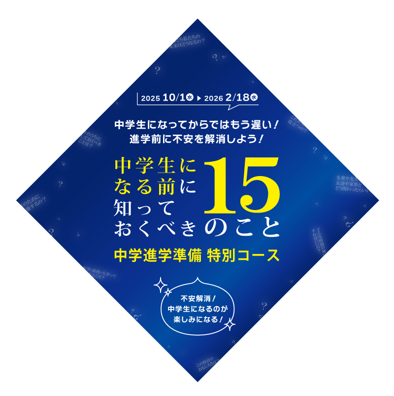 私たちは、この「中1ギャップ」を乗り越え、お子さまが最高のスタートを切れるよう、特別な講座をご用意しました。