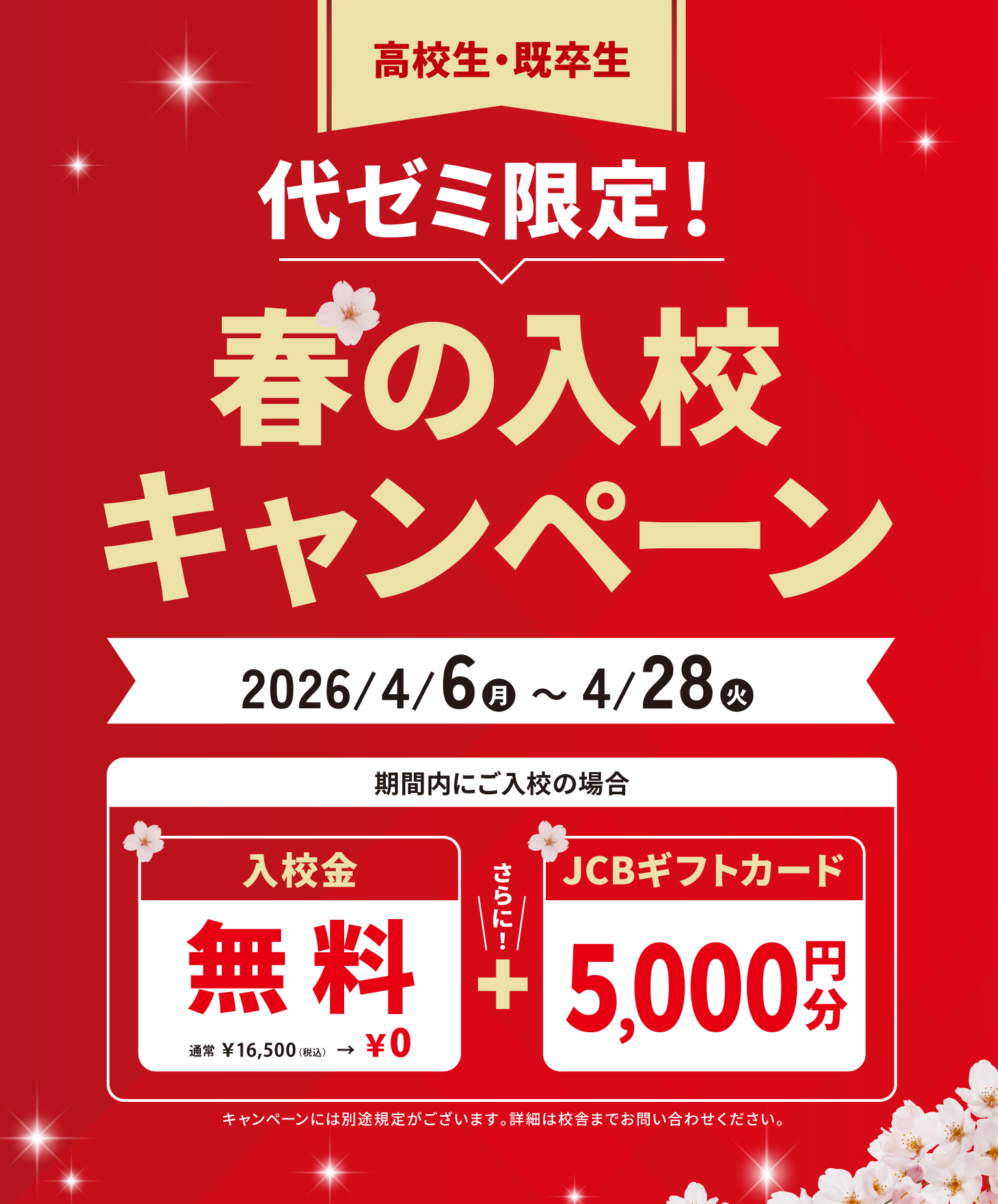 ※キャンペーンには別途規定がございます。詳細は校舎までお問い合わせください。